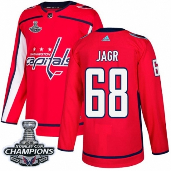 • Youth Adidas Washington Capitals #68 Jaromir Jagr Authentic Red Home 2018 Stanley Cup Final Champions NHL Jersey