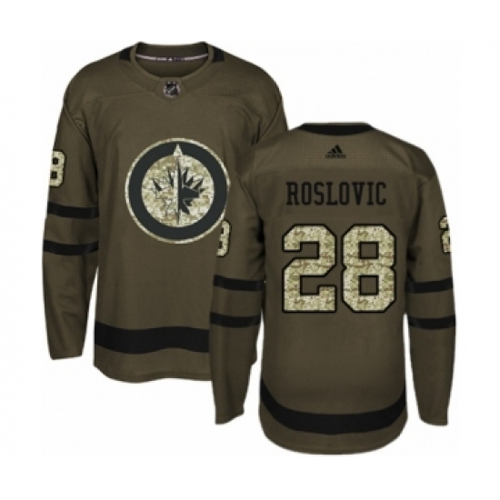 • Youth Adidas Winnipeg Jets #28 Jack Roslovic Authentic Green Salute to Service NHL Jersey