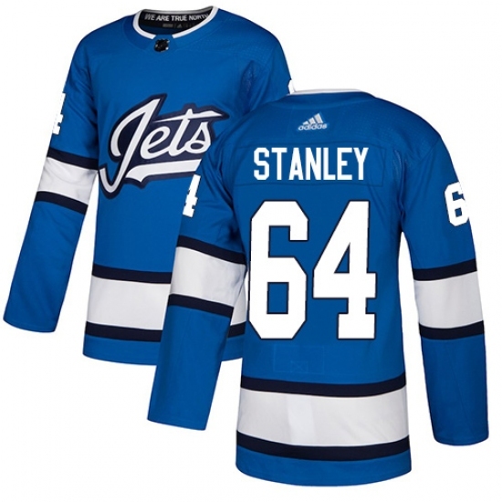 • Youth Adidas Winnipeg Jets #64 Logan Stanley Authentic Blue Alternate NHL Jersey
