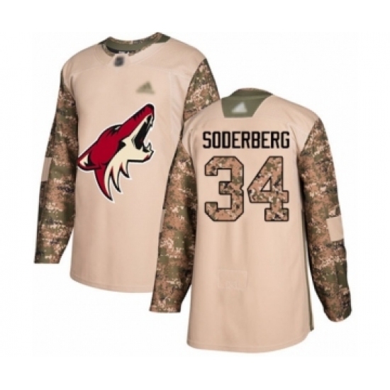 • Youth Arizona Coyotes #34 Carl Soderberg Authentic Camo Veterans Day Practice Hockey Jersey