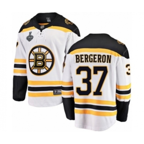 • Youth Boston Bruins #37 Patrice Bergeron Authentic White Away Fanatics Branded Breakaway 2019 Stanley Cup Final Bound Hockey Jersey