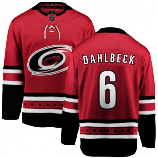 • Youth Carolina Hurricanes #6 Klas Dahlbeck Fanatics Branded Red Home Breakaway NHL Jersey
