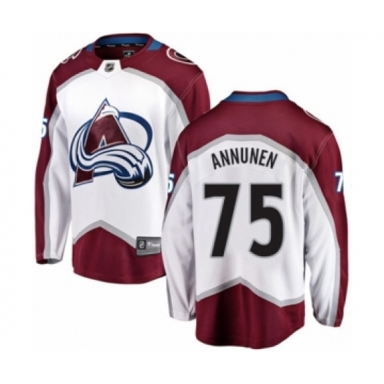• Youth Colorado Avalanche #75 Justus Annunen Authentic White Away Fanatics Branded Breakaway NHL Jersey