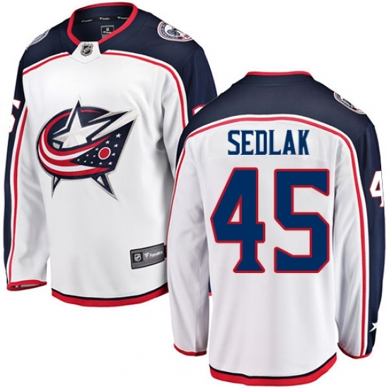 • Youth Columbus Blue Jackets #45 Lukas Sedlak Fanatics Branded White Away Breakaway NHL Jersey
