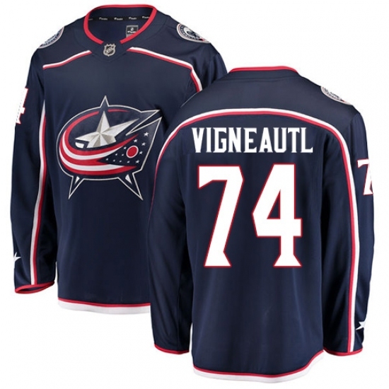 Youth Columbus Blue Jackets #74 Sam Vigneault Authentic Navy Blue Home Fanatics Branded Breakaway NHL Jersey