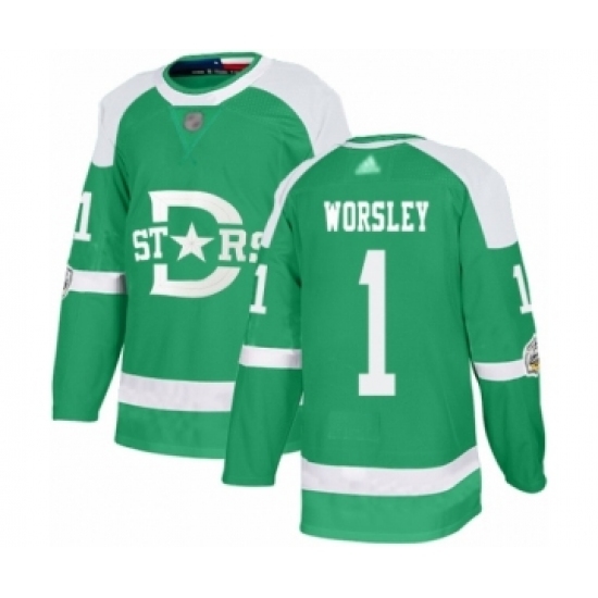 Youth Dallas Stars #1 Gump Worsley Authentic Green 2020 Winter Classic Hockey Jersey