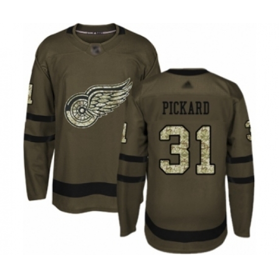 • Youth Detroit Red Wings #31 Calvin Pickard Authentic Green Salute to Service Hockey Jersey