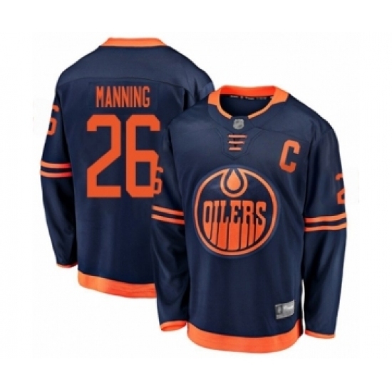 • Youth Edmonton Oilers #26 Brandon Manning Authentic Navy Blue Alternate Fanatics Branded Breakaway Hockey Jersey