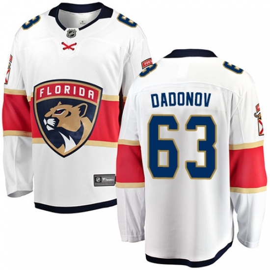 • Youth Florida Panthers #63 Evgenii Dadonov Fanatics Branded White Away Breakaway NHL Jersey