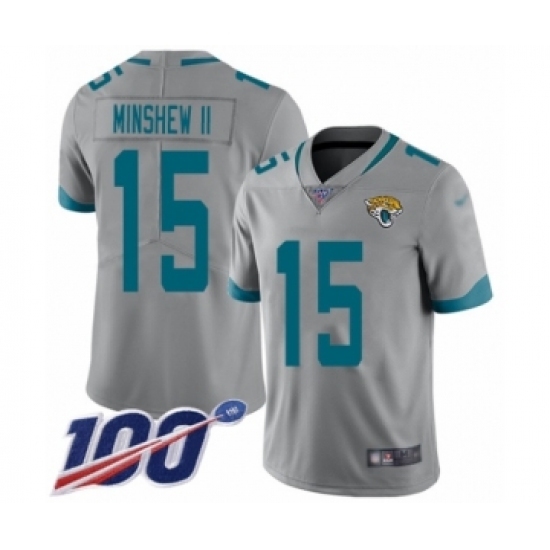 Youth Jacksonville Jaguars #15 Gardner Minshew II Silver Inverted Legend Limited 100th Season Football Jersey
