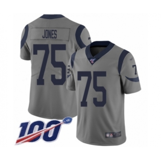• Youth Los Angeles Rams #75 Deacon Jones Limited Gray Inverted Legend 100th Season Football Jersey