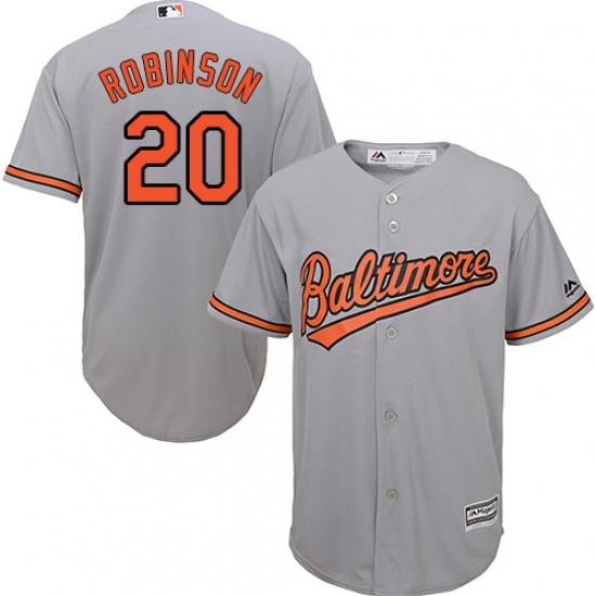 • Youth Majestic Baltimore Orioles #20 Frank Robinson Replica Grey Road Cool Base MLB Jersey