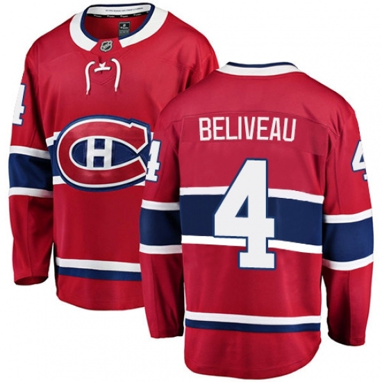 • Youth Montreal Canadiens #4 Jean Beliveau Authentic Red Home Fanatics Branded Breakaway NHL Jersey