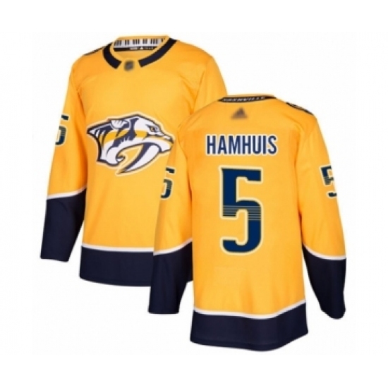 • Youth Nashville Predators #5 Dan Hamhuis Authentic Gold Home Hockey Jersey