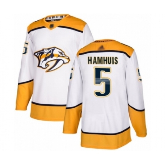 • Youth Nashville Predators #5 Dan Hamhuis Authentic White Away Hockey Jersey