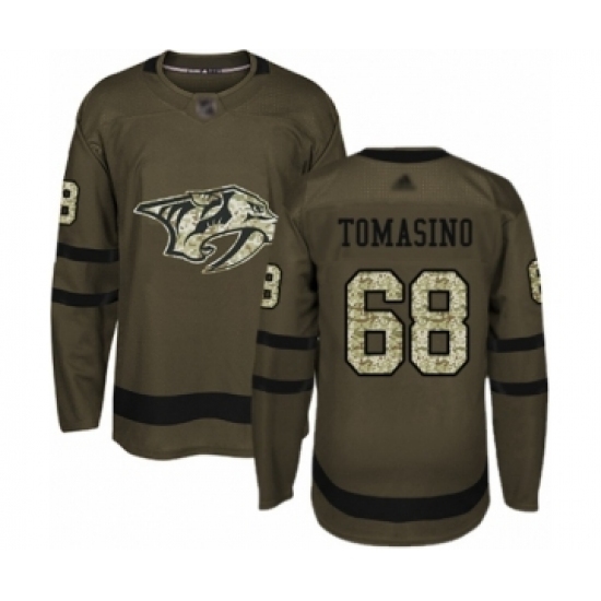 • Youth Nashville Predators #68 Philip Tomasino Authentic Green Salute to Service Hockey Jersey