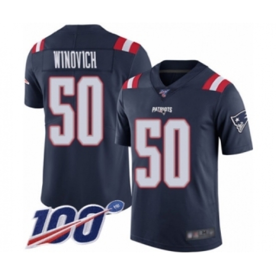 • Youth New England Patriots #50 Chase Winovich Limited Navy Blue Rush Vapor Untouchable 100th Season Football Jersey