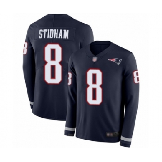 • Youth New England Patriots #8 Jarrett Stidham Limited Navy Blue Therma Long Sleeve Football Jersey