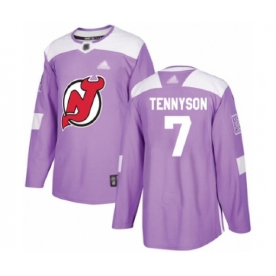 • Youth New Jersey Devils #7 Matt Tennyson Authentic Purple Fights Cancer Practice Hockey Jersey