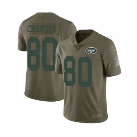 • Youth New York Jets #80 Jamison Crowder Limited Olive 2017 Salute to Service Football Jersey