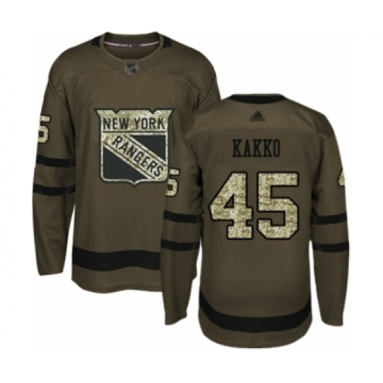 Youth New York Rangers #45 Kaapo Kakko Authentic Green Salute to Service Hockey Jersey