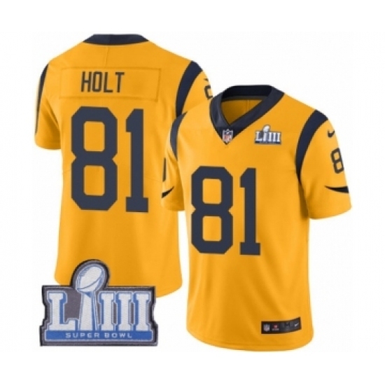 • Youth Nike Los Angeles Rams #81 Torry Holt Limited Gold Rush Vapor Untouchable Super Bowl LIII Bound NFL Jersey