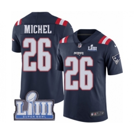 • Youth Nike New England Patriots #26 Sony Michel Limited Navy Blue Rush Vapor Untouchable Super Bowl LIII Bound NFL Jersey