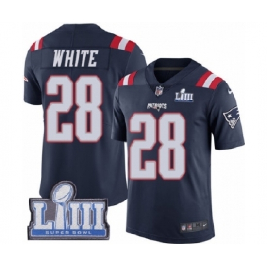 • Youth Nike New England Patriots #28 James White Limited Navy Blue Rush Vapor Untouchable Super Bowl LIII Bound NFL Jersey