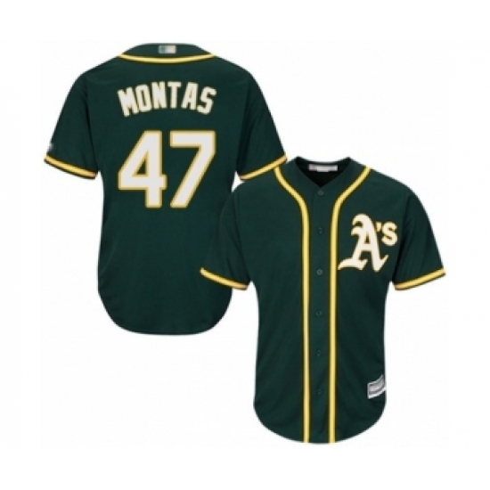 • Youth Oakland Athletics #47 Frankie Montas Authentic Green Alternate 1 Cool Base Baseball Player Jersey