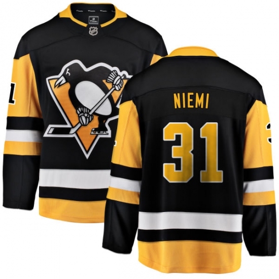 • Youth Pittsburgh Penguins #31 Antti Niemi Fanatics Branded Black Home Breakaway NHL Jersey