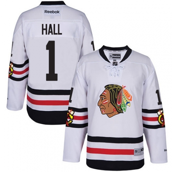 • Youth Reebok Chicago Blackhawks #1 Glenn Hall Authentic White 2017 Winter Classic NHL Jersey