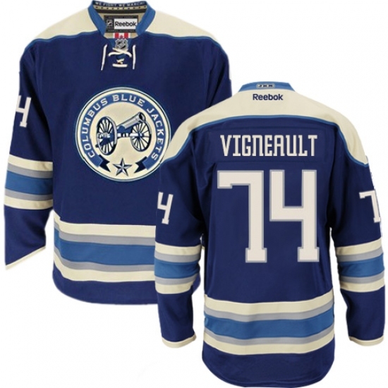 Youth Reebok Columbus Blue Jackets #74 Sam Vigneault Authentic Navy Blue Third NHL Jersey