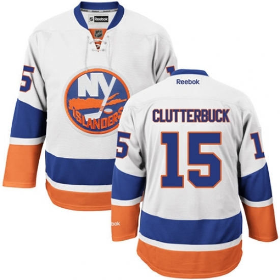 Youth Reebok New York Islanders #15 Cal Clutterbuck Authentic White Away NHL Jersey