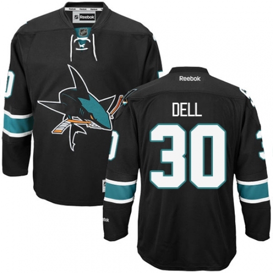 • Youth Reebok San Jose Sharks #30 Aaron Dell Authentic Black Third NHL Jersey