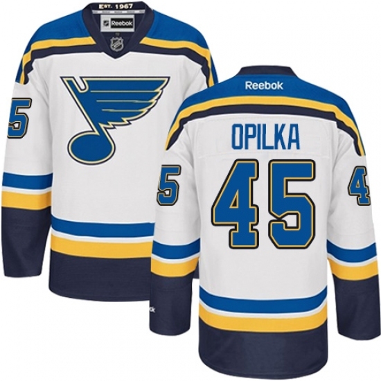 Youth Reebok St. Louis Blues #45 Luke Opilka Authentic White Away NHL Jersey
