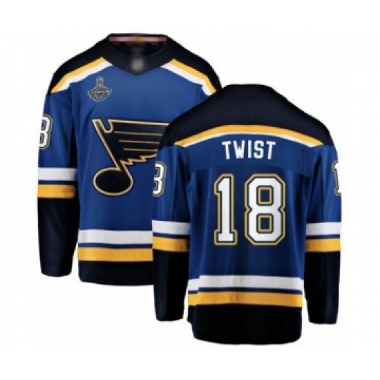 • Youth St. Louis Blues #18 Tony Twist Fanatics Branded Royal Blue Home Breakaway 2019 Stanley Cup Champions Hockey Jersey