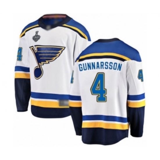 • Youth St. Louis Blues #4 Carl Gunnarsson Fanatics Branded White Away Breakaway 2019 Stanley Cup Final Bound Hockey Jersey