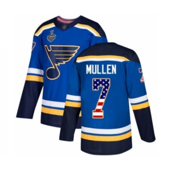 Youth St. Louis Blues #7 Joe Mullen Authentic Blue USA Flag Fashion 2019 Stanley Cup Final Bound Hockey Jersey
