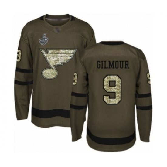 • Youth St. Louis Blues #9 Doug Gilmour Authentic Green Salute to Service 2019 Stanley Cup Final Bound Hockey Jersey