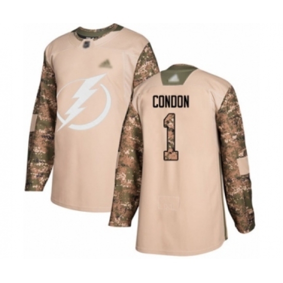 • Youth Tampa Bay Lightning #1 Mike Condon Authentic Camo Veterans Day Practice Hockey Jersey