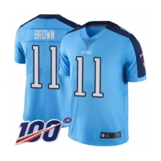 Youth Tennessee Titans #11 A.J. Brown Limited Light Blue Rush Vapor Untouchable 100th Season Football Jersey
