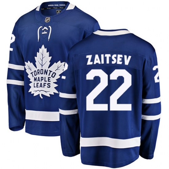 • Youth Toronto Maple Leafs #22 Nikita Zaitsev Fanatics Branded Royal Blue Home Breakaway NHL Jersey