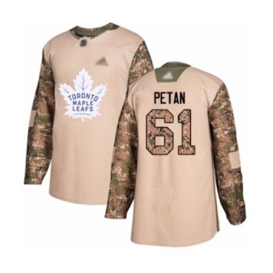 • Youth Toronto Maple Leafs #61 Nic Petan Authentic Camo Veterans Day Practice Hockey Jersey