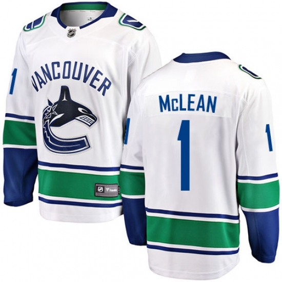 Youth Vancouver Canucks #1 Kirk Mclean Fanatics Branded White Away Breakaway NHL Jersey