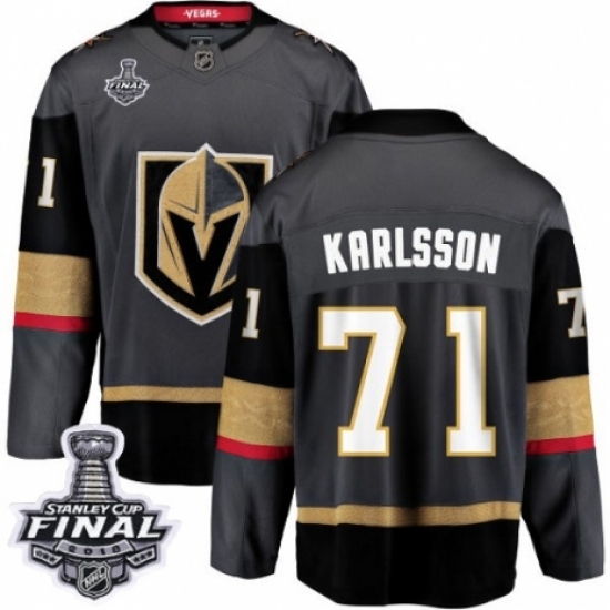 • Youth Vegas Golden Knights #71 William Karlsson Authentic Black Home Fanatics Branded Breakaway 2018 Stanley Cup Final NHL Jersey