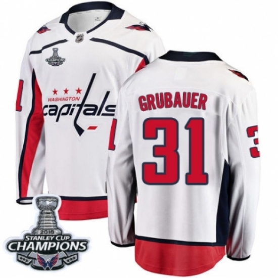 • Youth Washington Capitals #31 Philipp Grubauer Fanatics Branded White Away Breakaway 2018 Stanley Cup Final Champions NHL Jersey