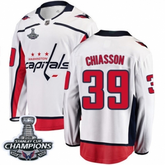 • Youth Washington Capitals #39 Alex Chiasson Fanatics Branded White Away Breakaway 2018 Stanley Cup Final Champions NHL Jersey