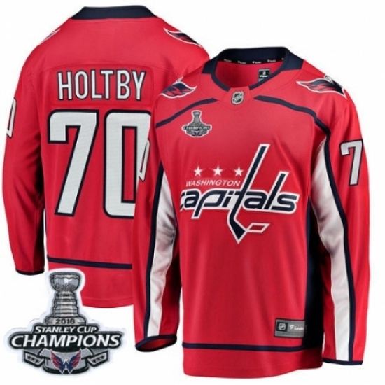 • Youth Washington Capitals #70 Braden Holtby Fanatics Branded Red Home Breakaway 2018 Stanley Cup Final Champions NHL Jersey