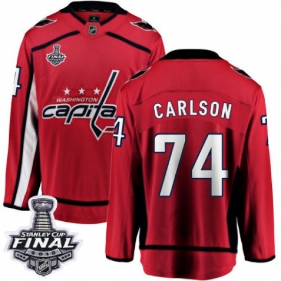 • Youth Washington Capitals #74 John Carlson Fanatics Branded Red Home Breakaway 2018 Stanley Cup Final NHL Jersey