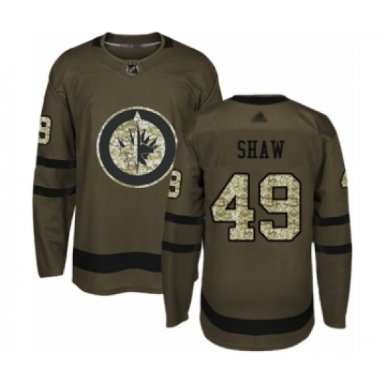 • Youth Winnipeg Jets #49 Logan Shaw Authentic Green Salute to Service Hockey Jersey